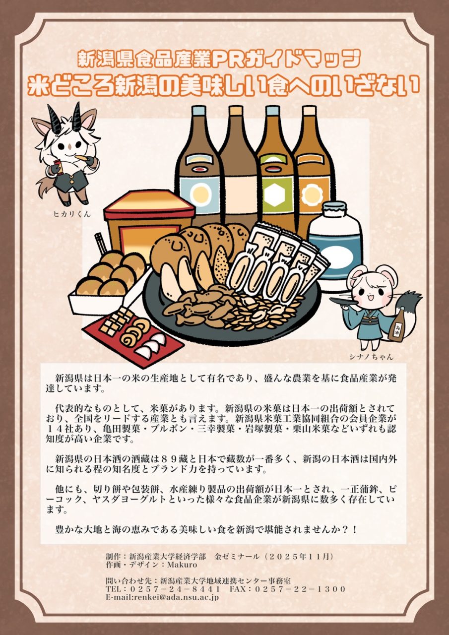 チーム名は「新潟は美味しい!」。テーマは「新潟は美味しい!~宝の山の新潟の食品産業を観光資源に!~」と題し発表しました。新潟県は米の生産地として有名であり、盛んな農業を基に食品産業が発達しています。また日本酒の酒蔵も多く、国内外に知られる知名度とブランド力を持っています。そこで、新潟の食品産業の観光資源化の促進を目指し、食品工場の見学を観光化するためのプラン・モデル観光コースの提案、食品産業PRガイドマップ制作と食品産業テーマパークのオープンを目指したいと提案をしました。今後は実地調査や自治体とも相談しながら、提案を具体化するべく活動する予定です。