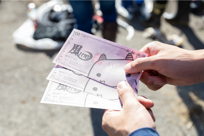 柏崎市の地元商店の活性化と地産地消の推進を目的とした、”お米と善意本位制”地域通貨「風輪通貨」を発行しています。通貨の単位は「風(フォン)」です。お米づくりと通貨の発行で柏崎を元気にしたいと頑張っています。
