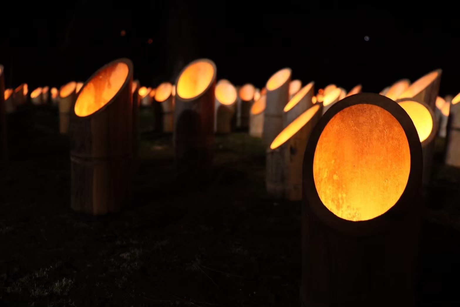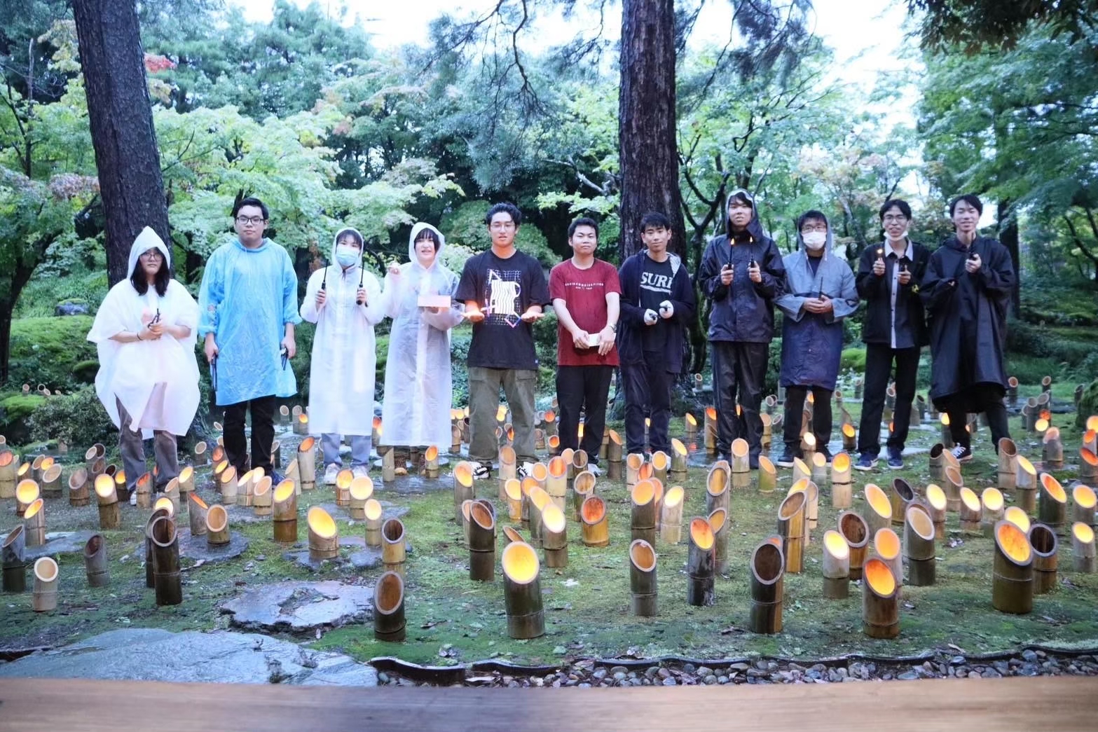 文化による≪まちづくり≫をテーマとして掲げ、柏崎市内の高田コミュニティセンターとコラボレーションし、市の史跡「飯塚邸」の日本庭園を約2000本の竹灯籠で幻想的に照らしました。この活動には地域の荒れた竹林を整備する目的もあり、準備段階で、学生は竹の伐採や加工作業に汗を流しました。