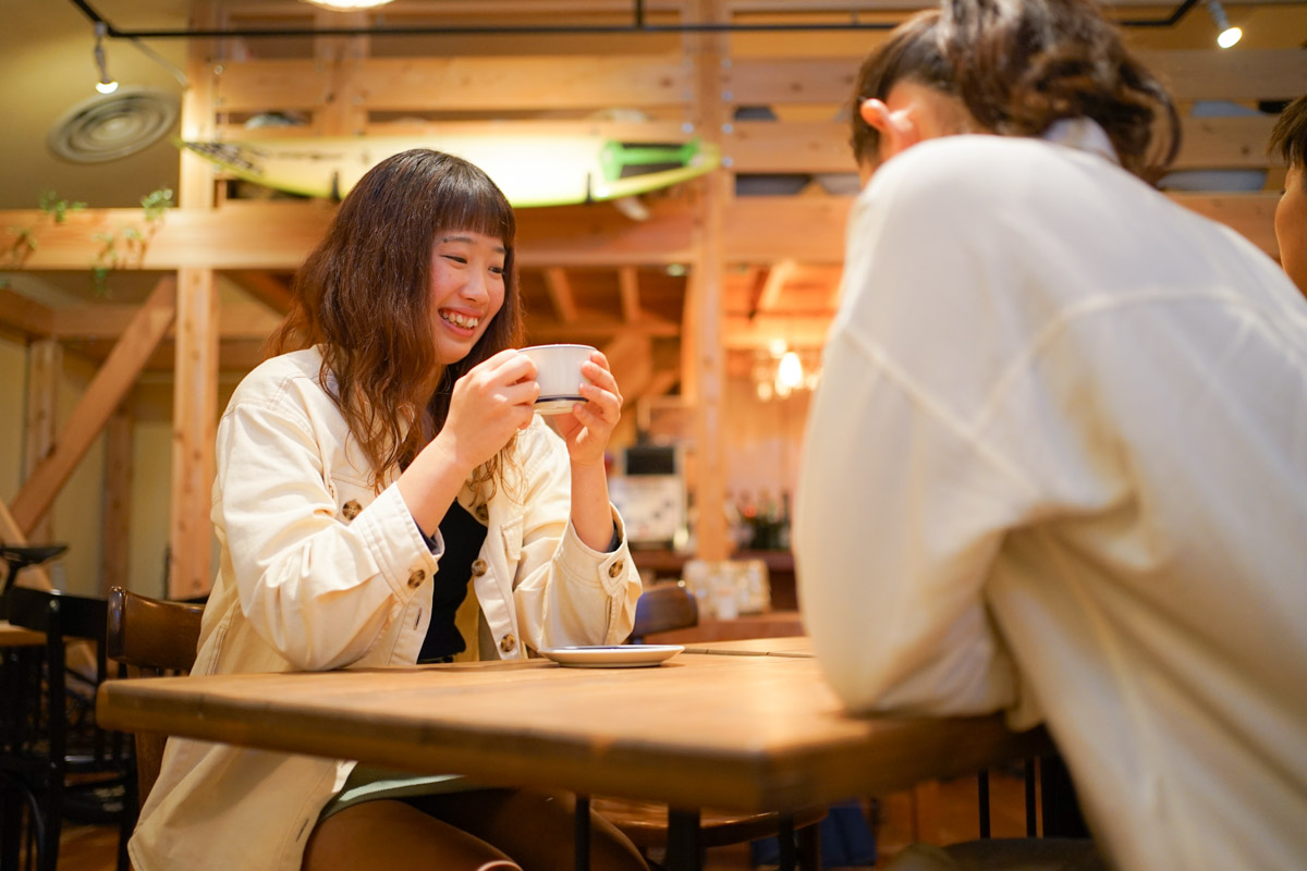 西海岸をイメージさせる空間の隠れ家的なカフェ。昼はカジュアルに、夜は照明を落としたムーディーな雰囲気を楽しむことができます。